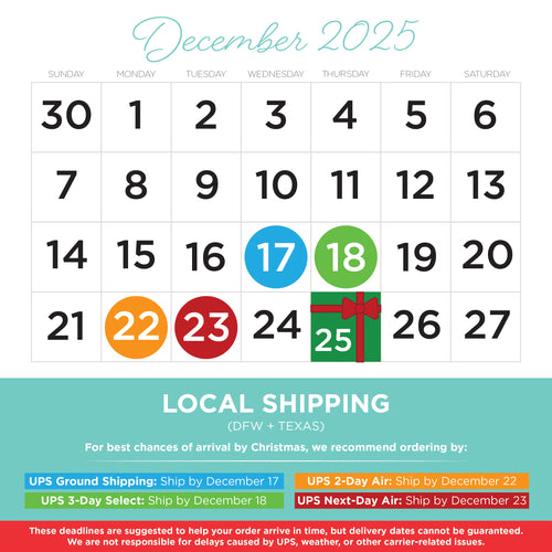 - UPS 2-Day Air: Ship by December 18